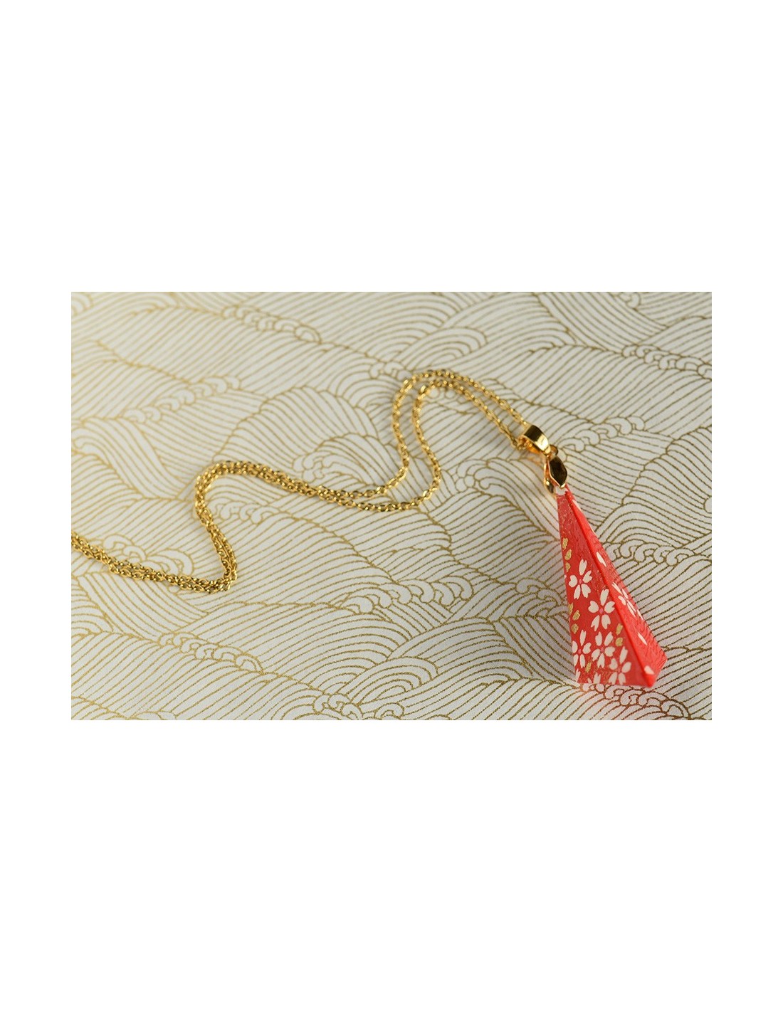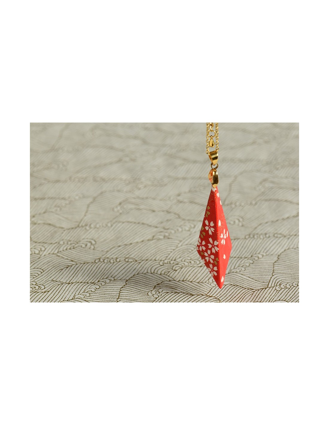 Leggerissima collana origami realizzata a mano con carta giapponese chiyogami da una autentica artigiana giapponese.