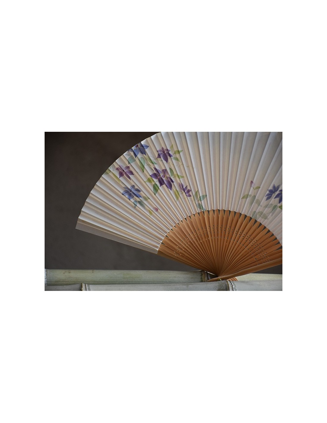 Tradizionale ventaglio in carta con struttura in bambù intagliata a mano.