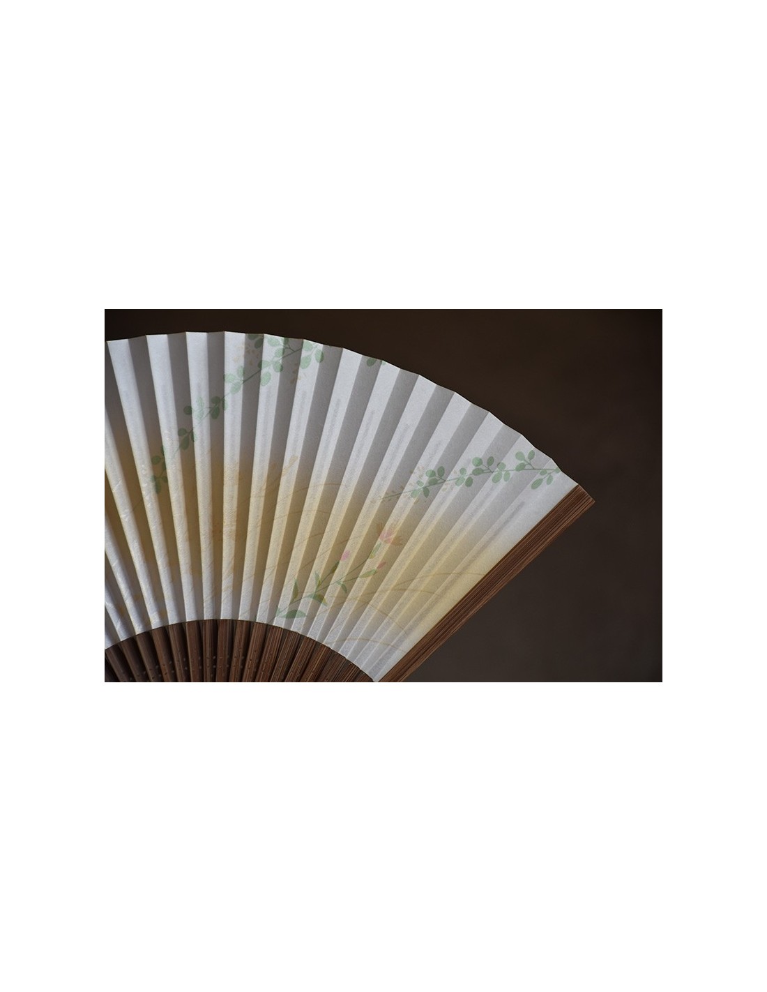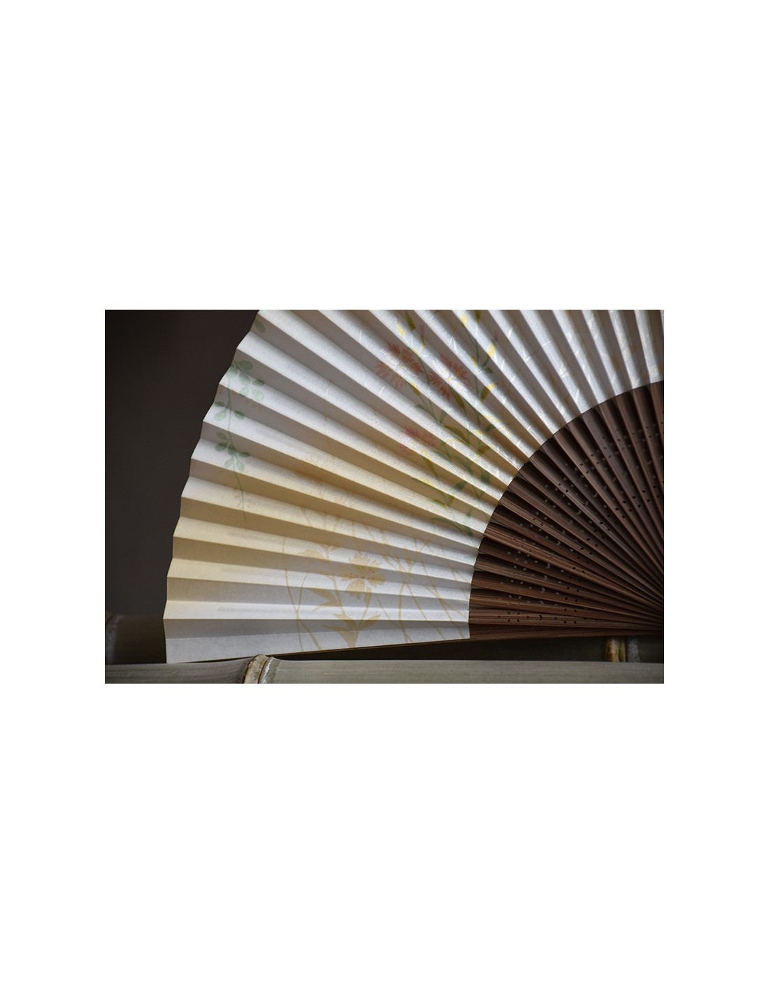 Tradizionale ventaglio in carta con struttura in bambù intagliata a mano.