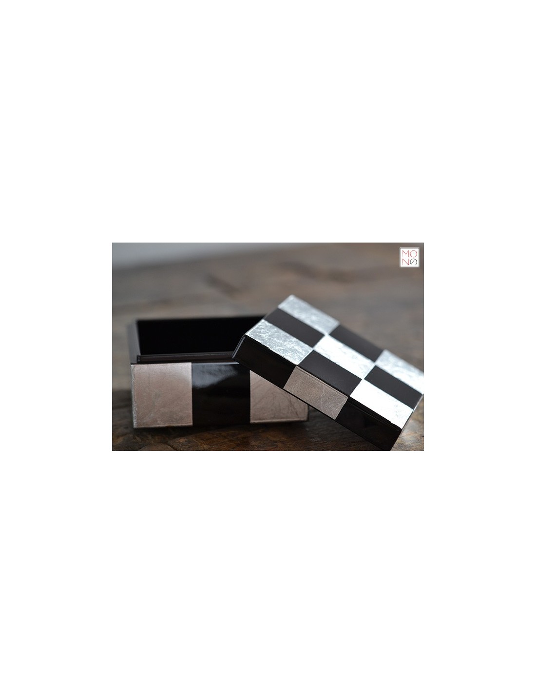 Scatola a scacchiera laccata Nero/Argento Dimensioni: 9cm x 9cm x 5,5cm 1pz