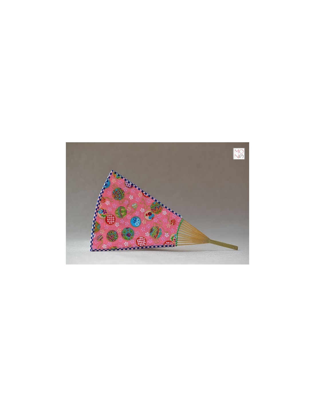 Piccolo ventaglio, struttura in bambù rivestita da tessuto stampato fatto a mano Dimensioni: 15,5cm x 18cm Le piccole dimensioni permettono di usarlo anche come segnalibro 1pz