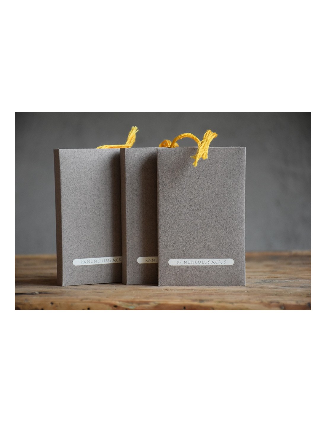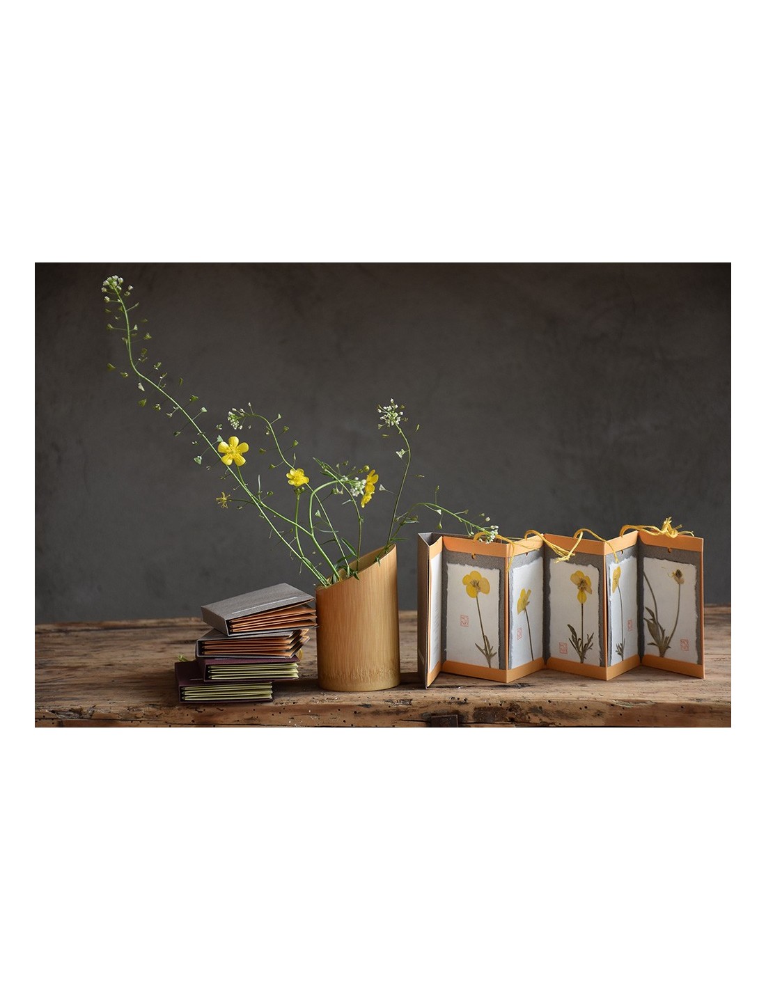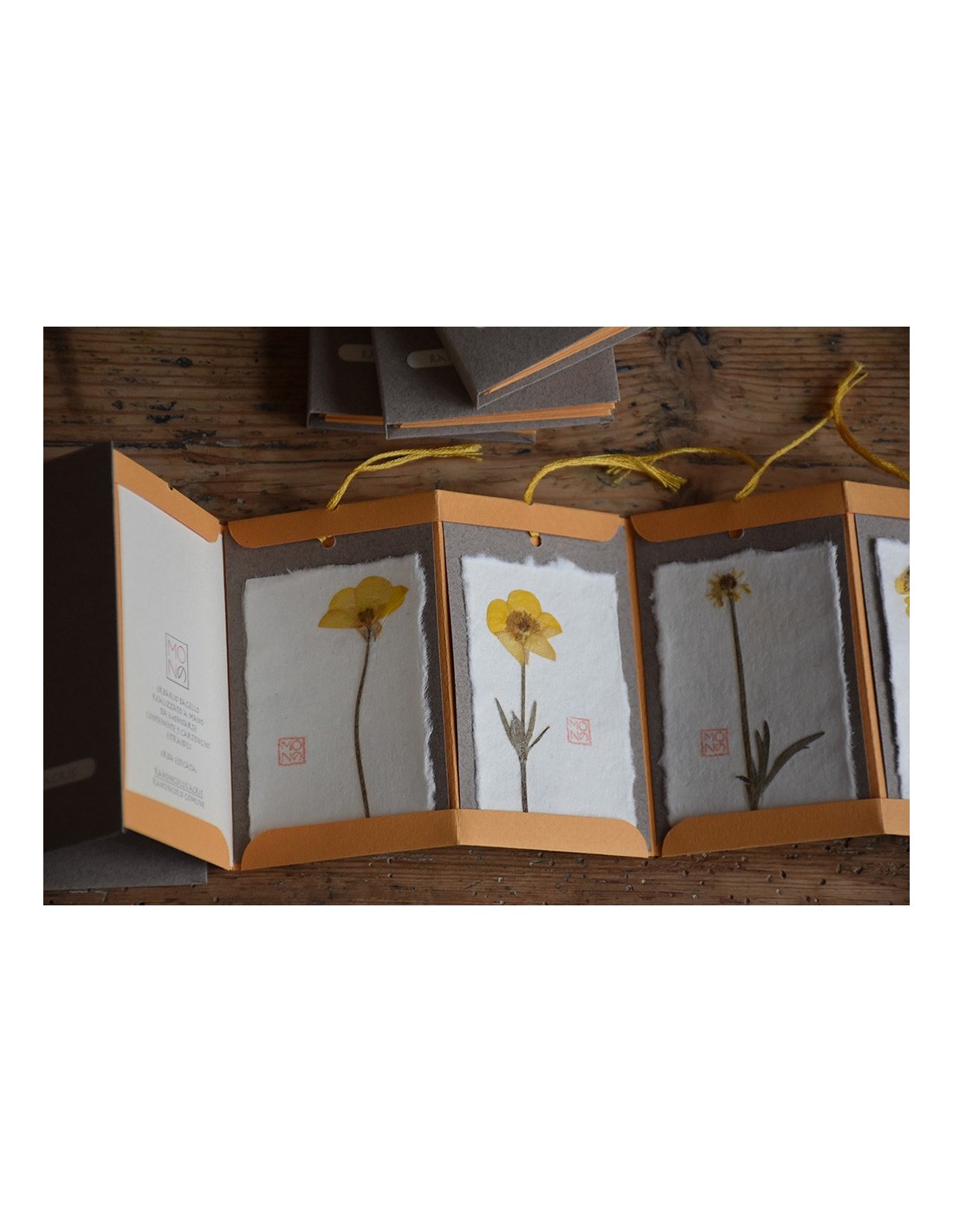 Ogni tag è realizzata con diversi strati di carte tra cui un velo di carta giapponese che riveste il fiore o la pianta utilizzati.