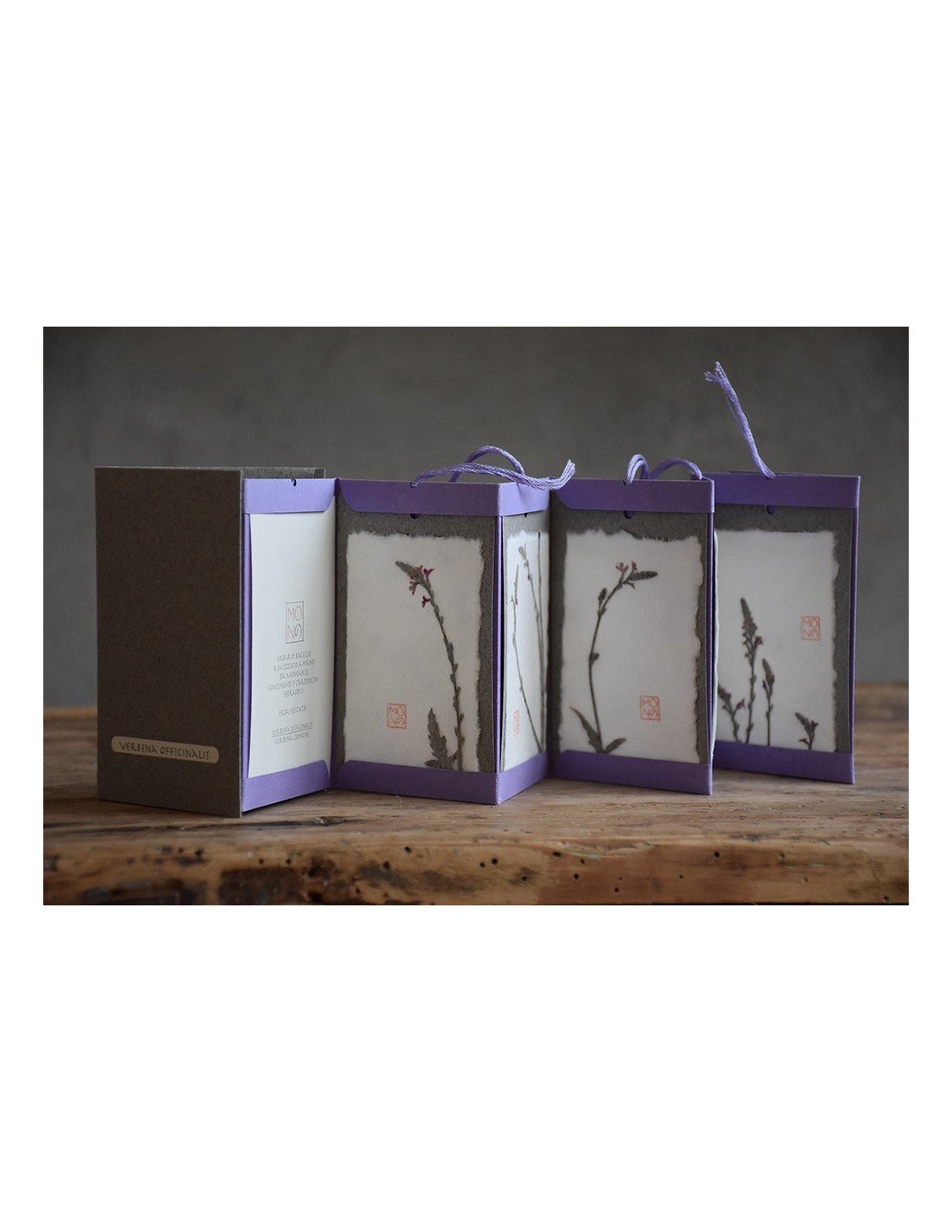 Ogni tag è realizzata con diversi strati di carte tra cui un velo di carta giapponese che riveste il fiore o la pianta utilizzati.