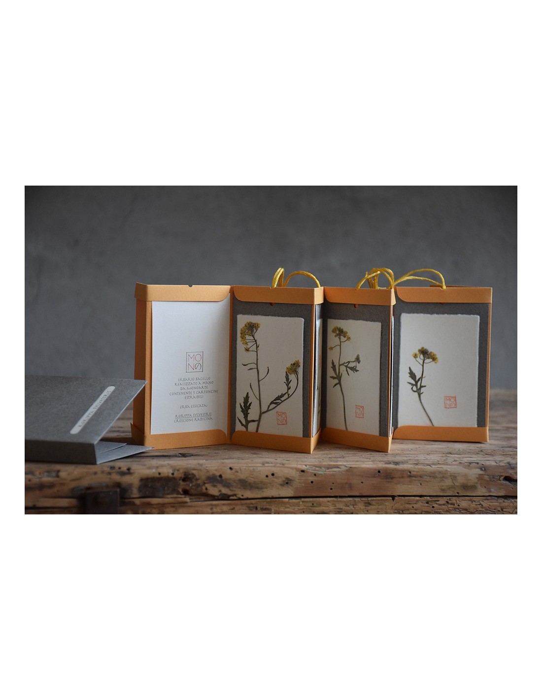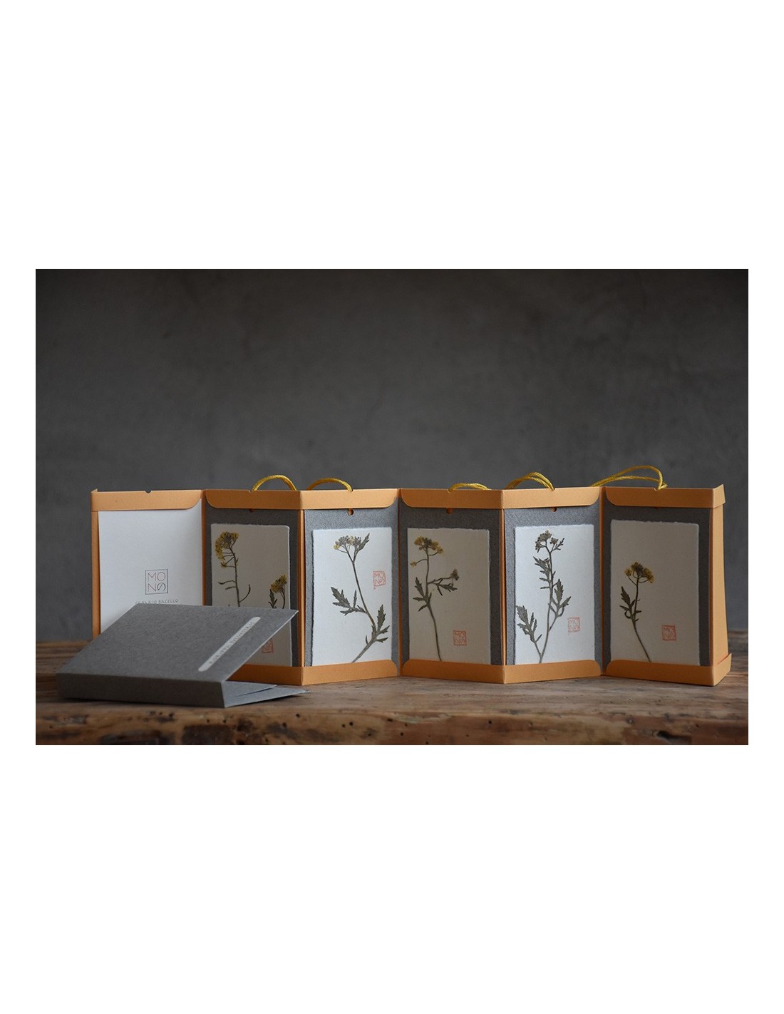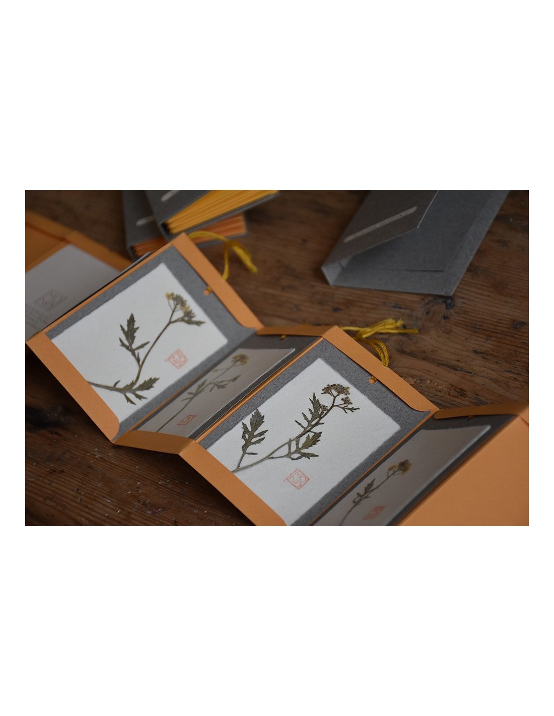 Ogni tag è realizzata con diversi strati di carte tra cui un velo di carta giapponese che riveste il fiore o la pianta utilizzati.