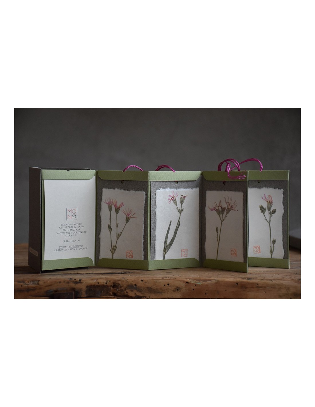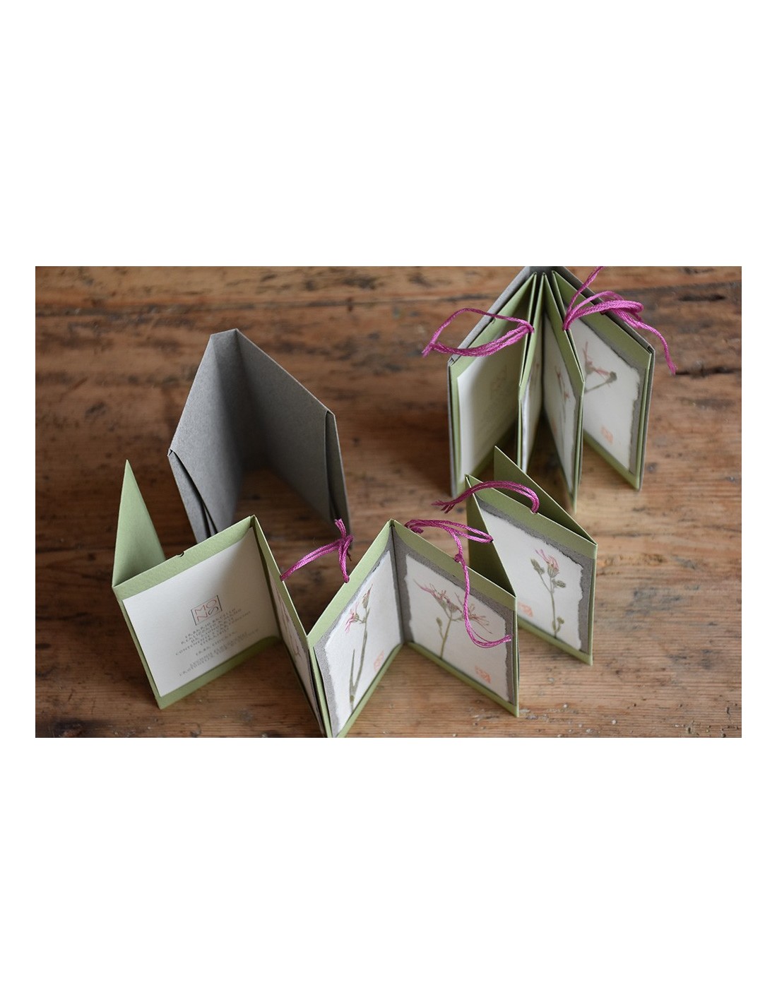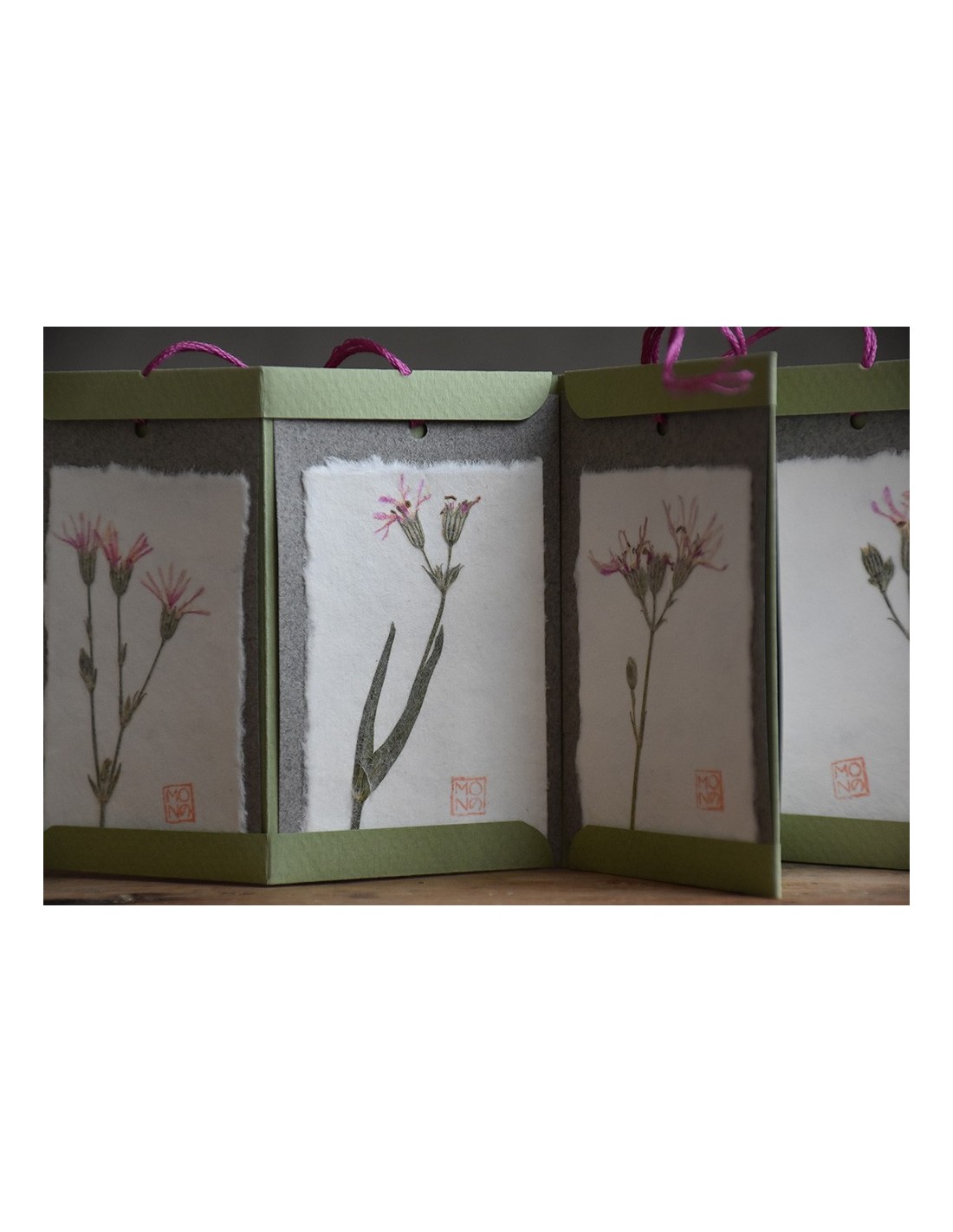 Ogni tag è realizzata con diversi strati di carte tra cui un velo di carta giapponese che riveste il fiore o la pianta utilizzati.