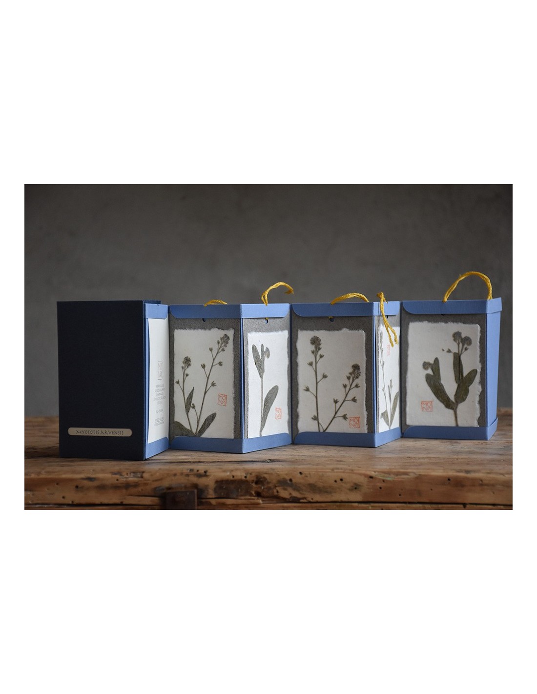 Ogni tag è realizzata con diversi strati di carte tra cui un velo di carta giapponese che riveste il fiore o la pianta utilizzati.