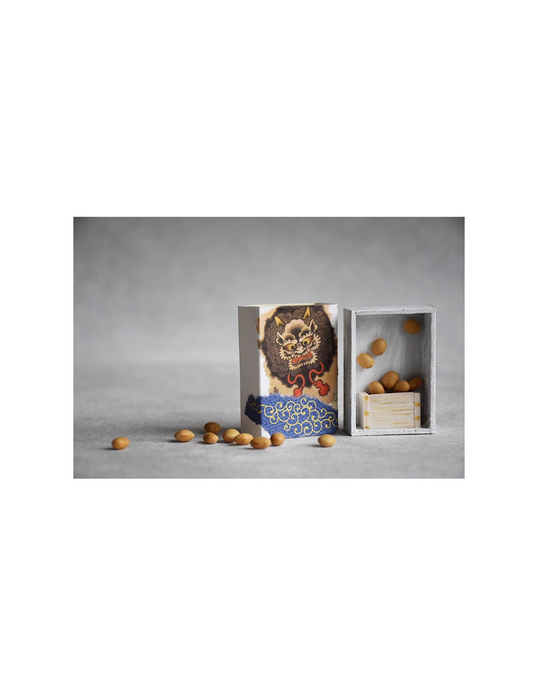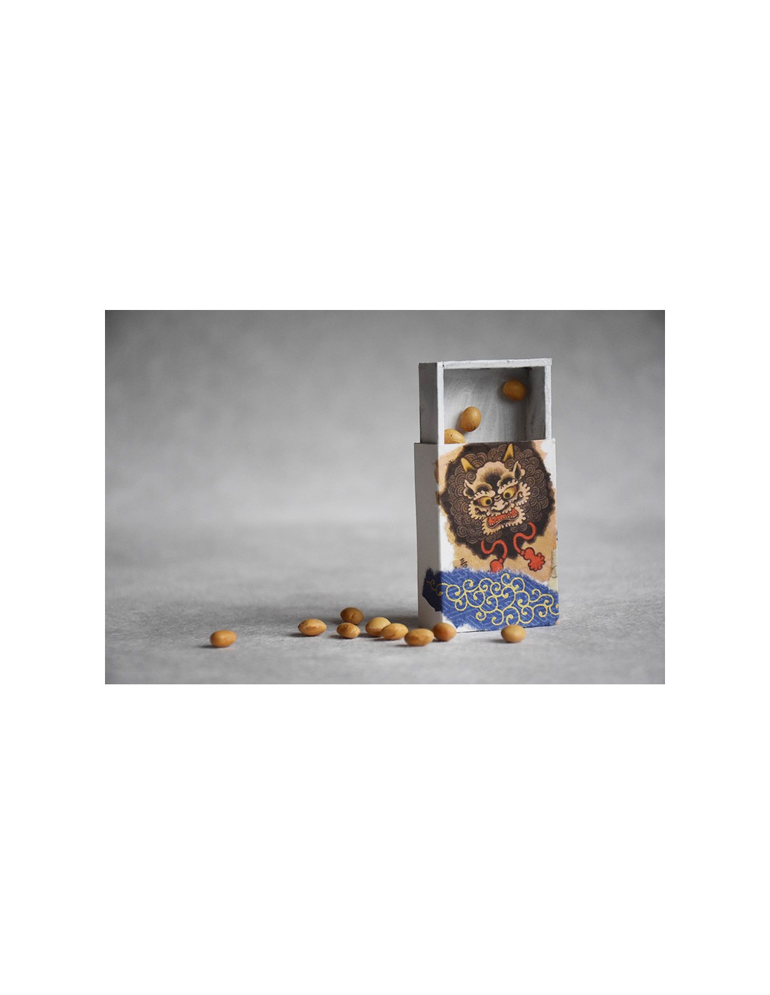 Piccola scatola, della dimensione di una scatola di fiammiferi, realizzata a mano per celebrare Setubun