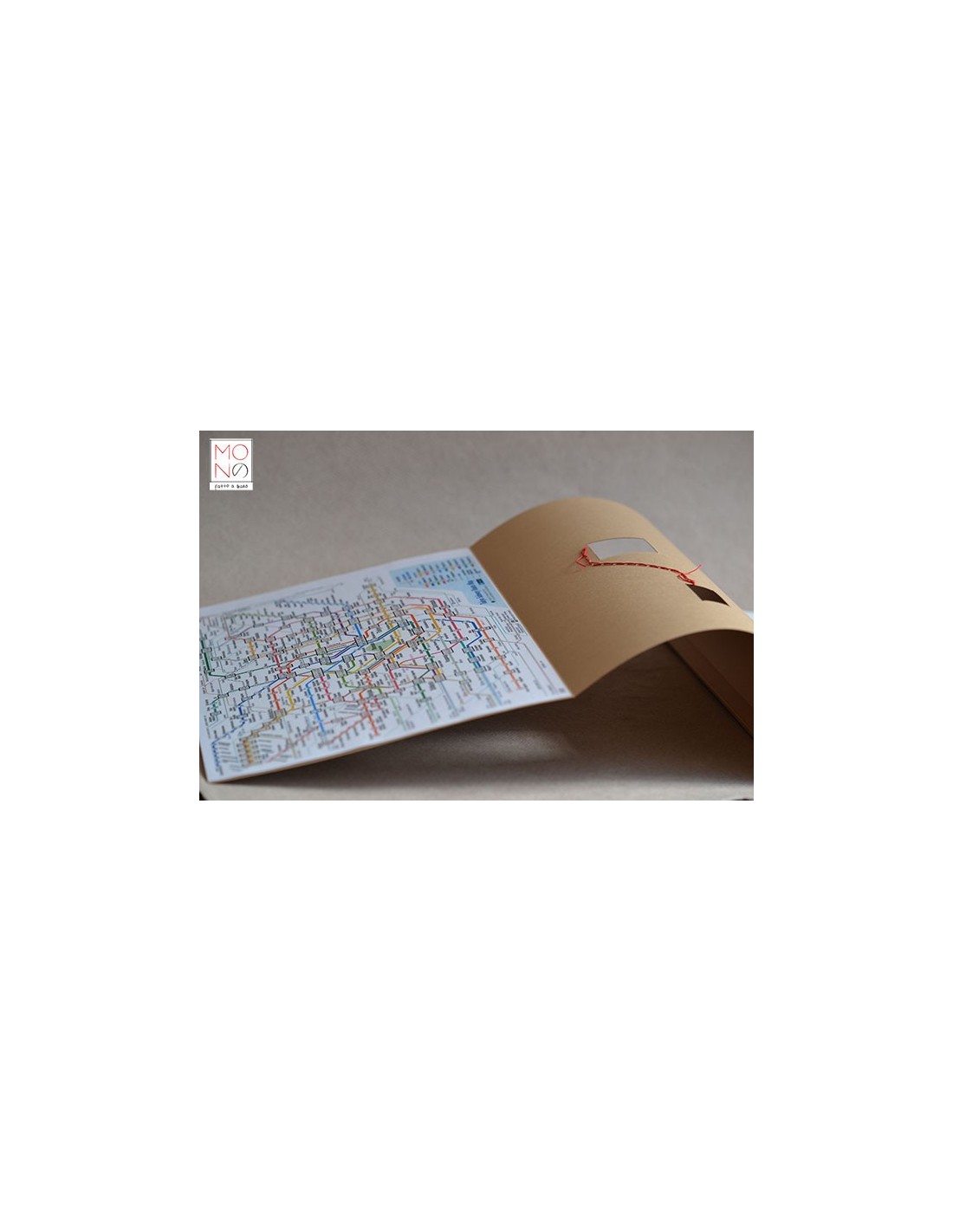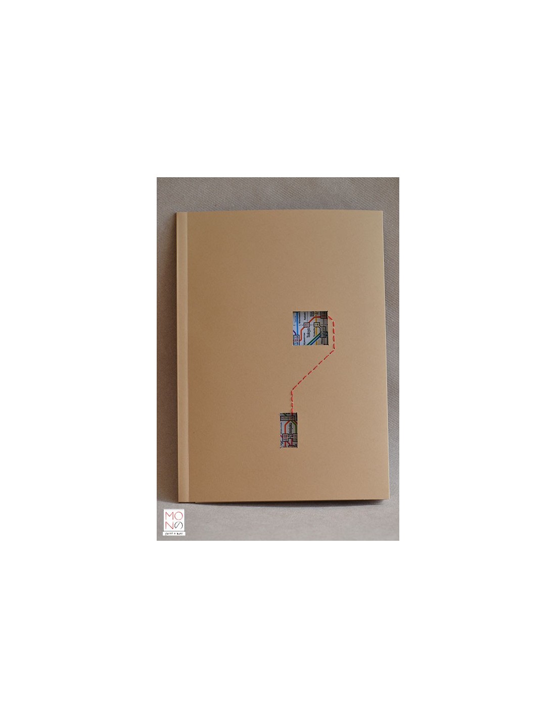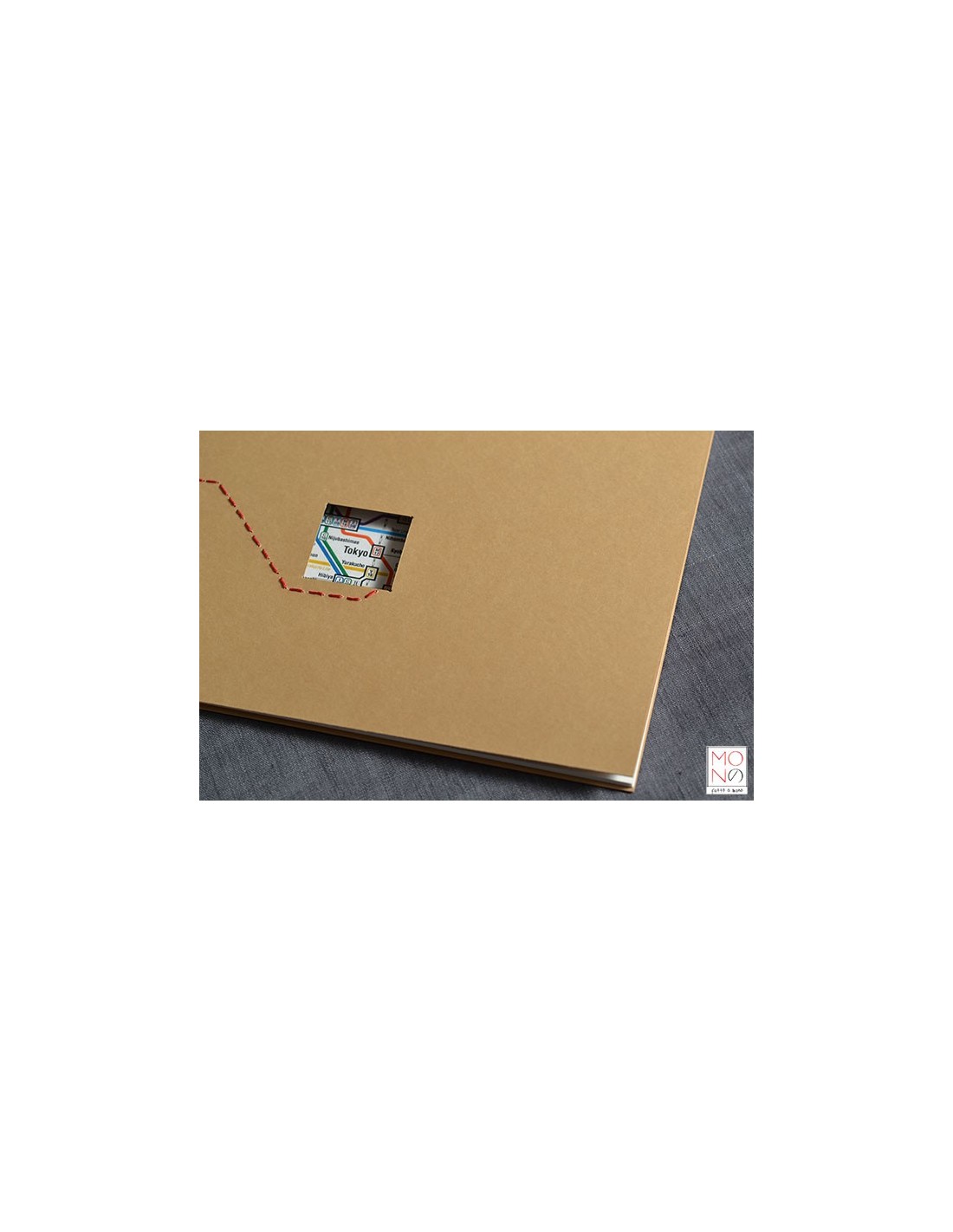 Copertina in cartoncino con interventi di cucitura e riproduzione della mappa metrò Tokyo