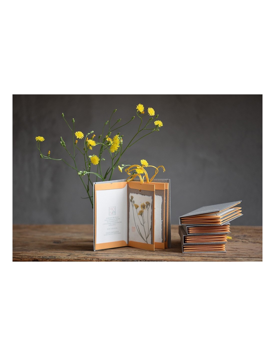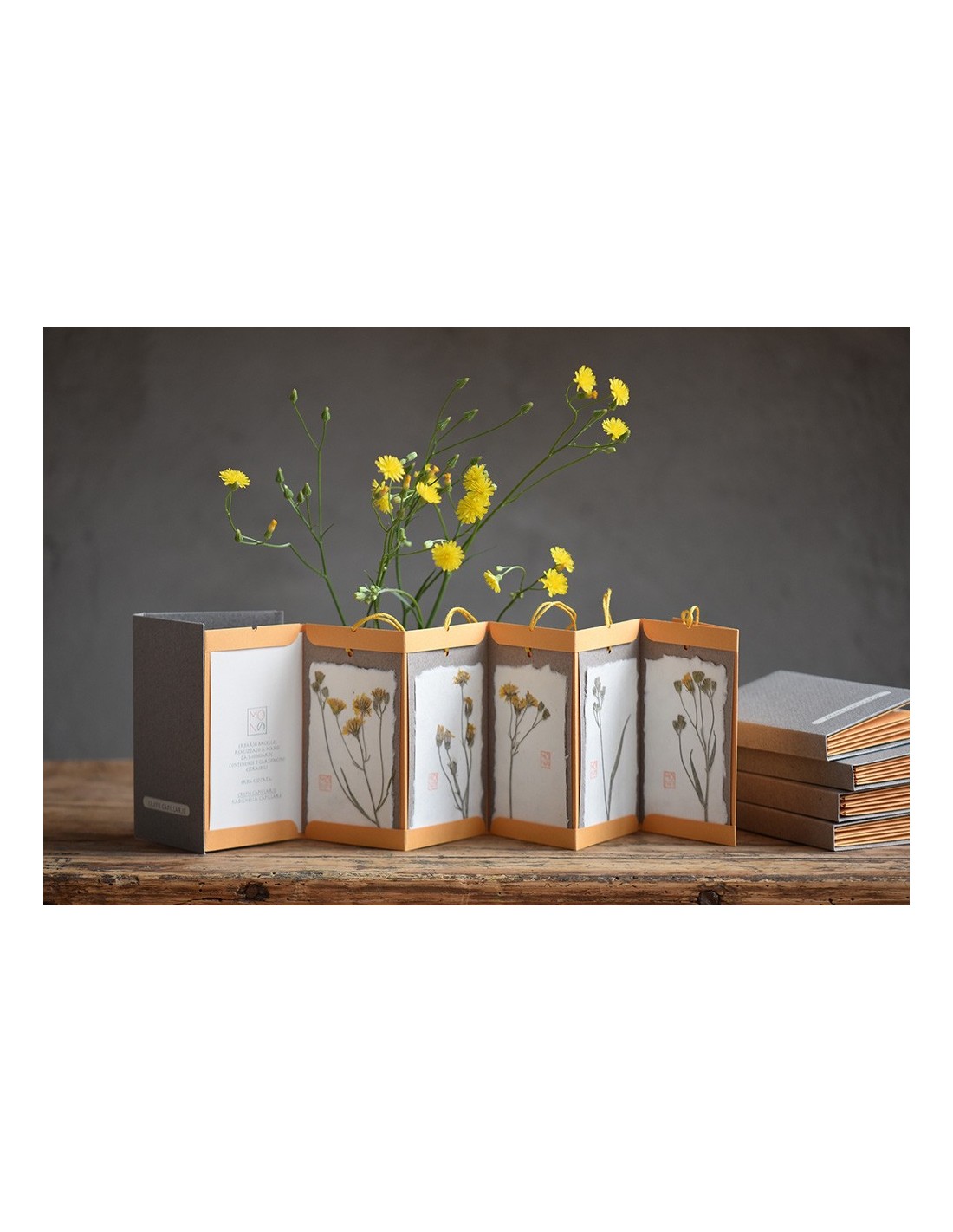 Ogni tag è realizzata con diversi strati di carte tra cui un velo di carta giapponese che riveste il fiore o la pianta utilizzati.