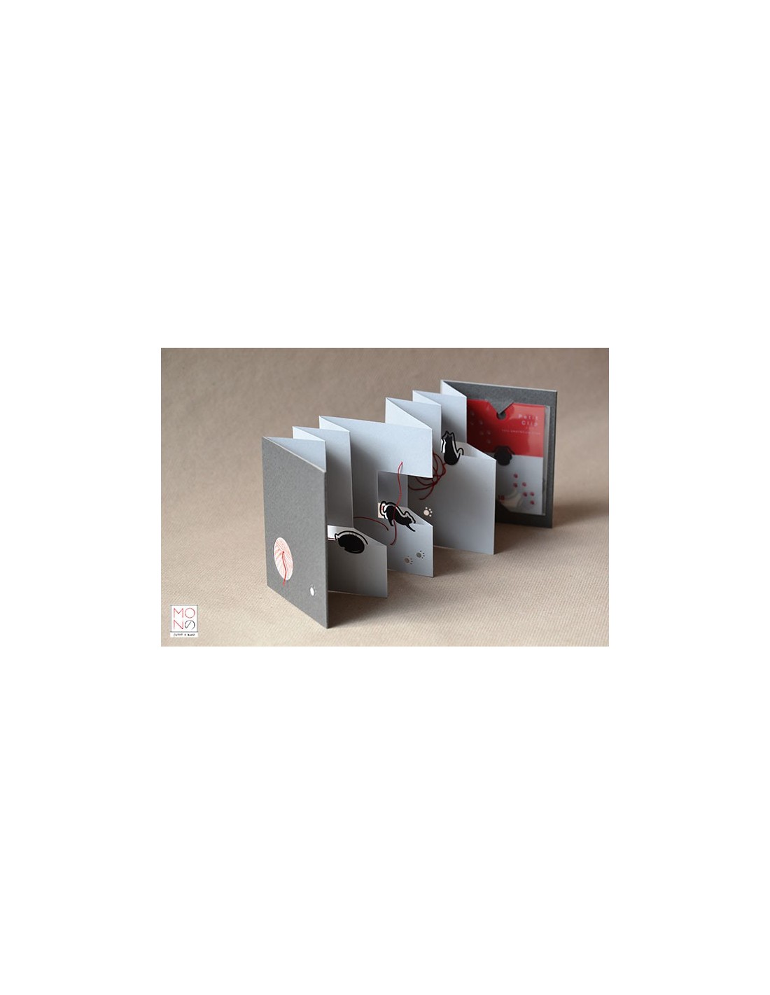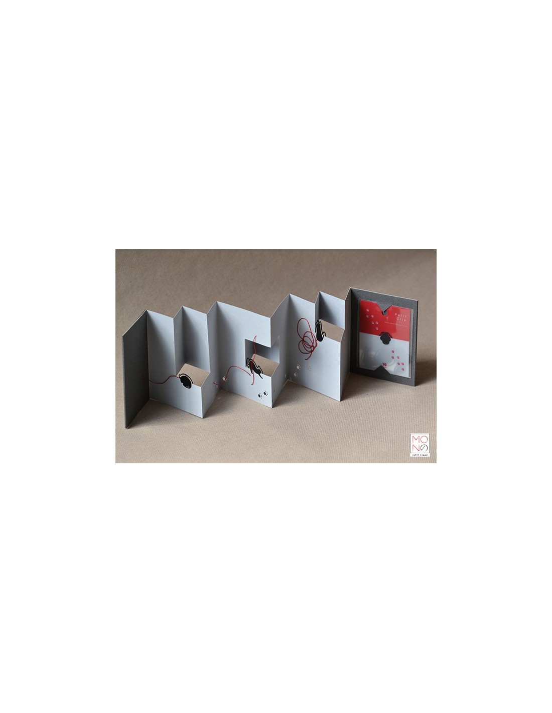 Struttura a concertina contenente una confezione di piccole clip, sottilissime, in metallo con forme e disegni tematici