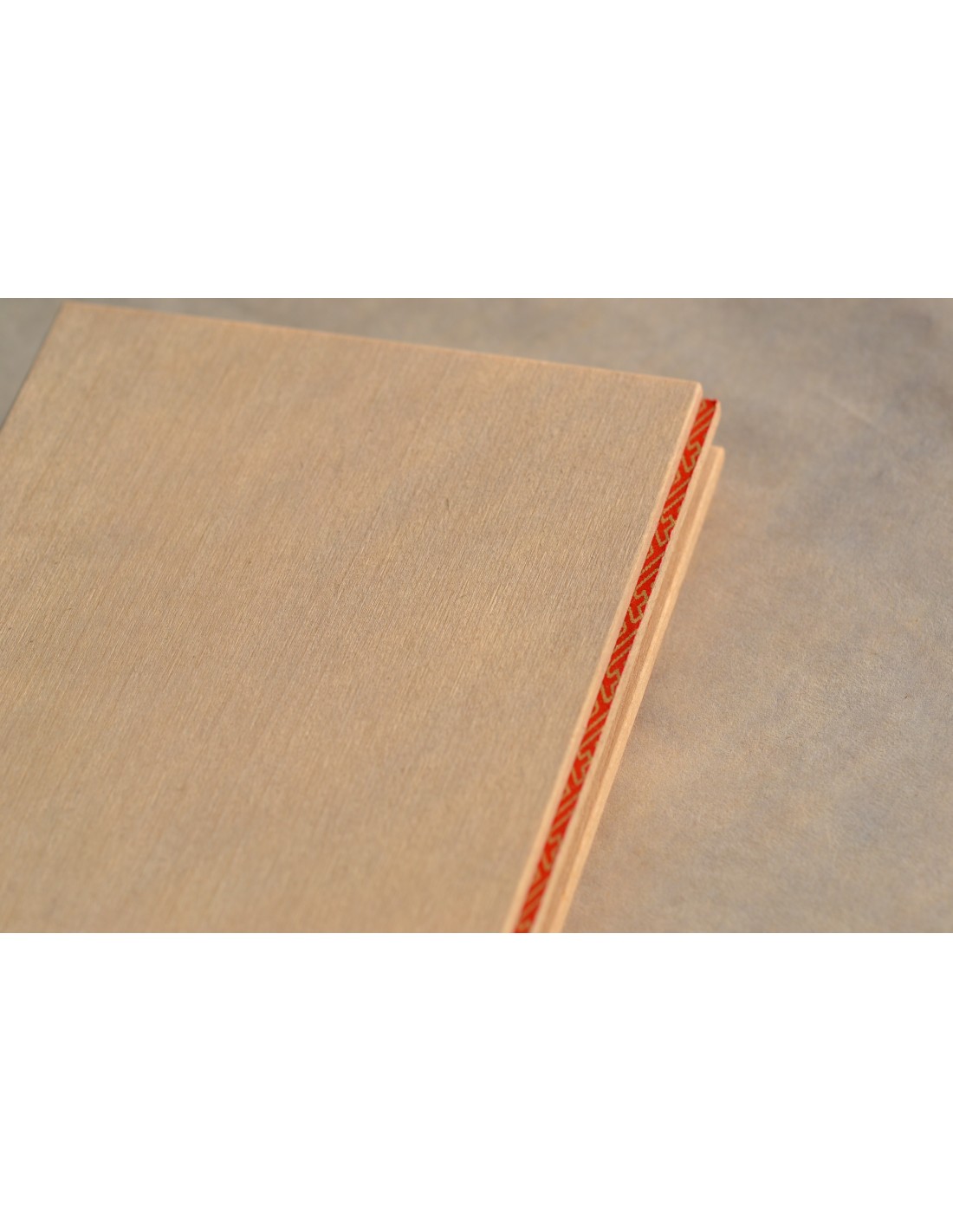 Struttura a concertina con inserti in carta chiyogami e piatti in legno.