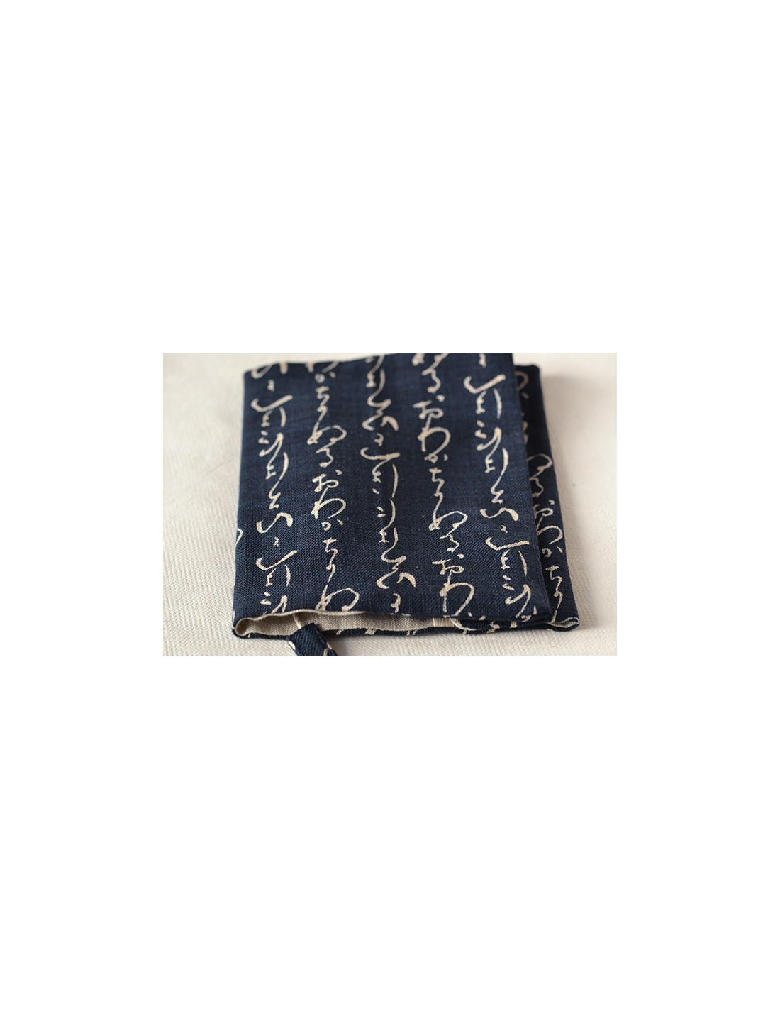 Tessuto in cotone stampato con pattern tradizionali giapponesi: pattern calligrafico blu