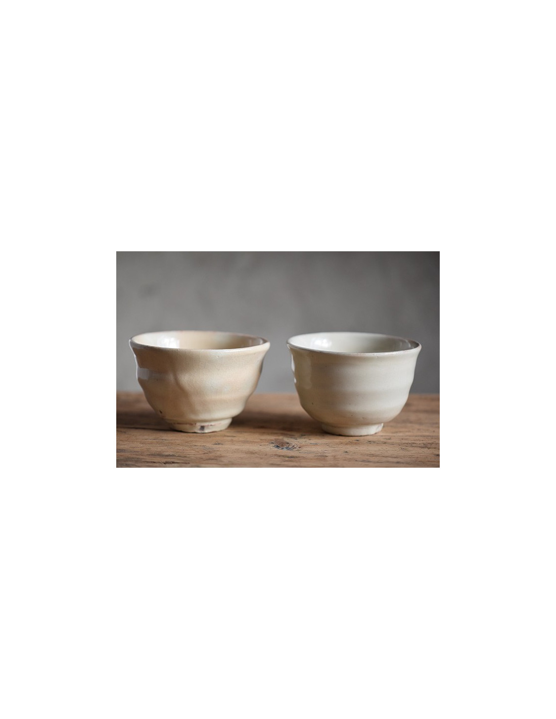 Set di due tazze in ceramica per il te verde, realizzate a mano da artigiano giapponese