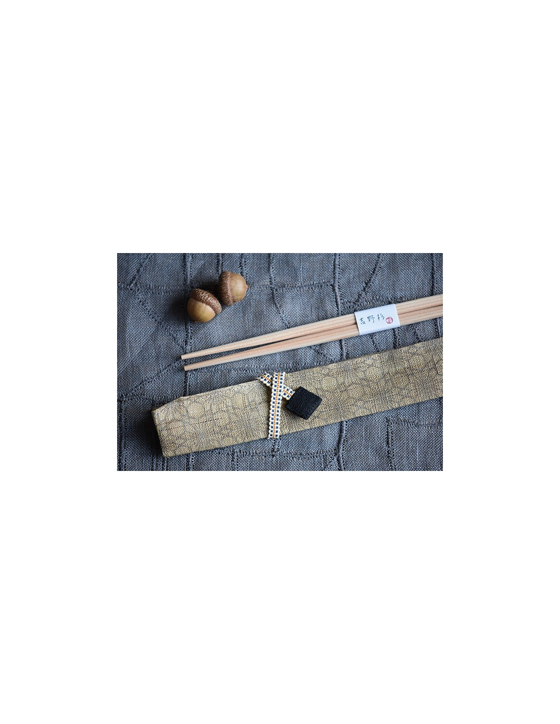 Bacchette in legno hinoki e porta bacchette in tessuto ramie stampato