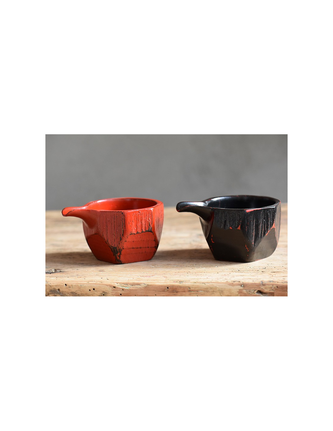Set composta da 2 piccoli contenitori per sake in legno laccato