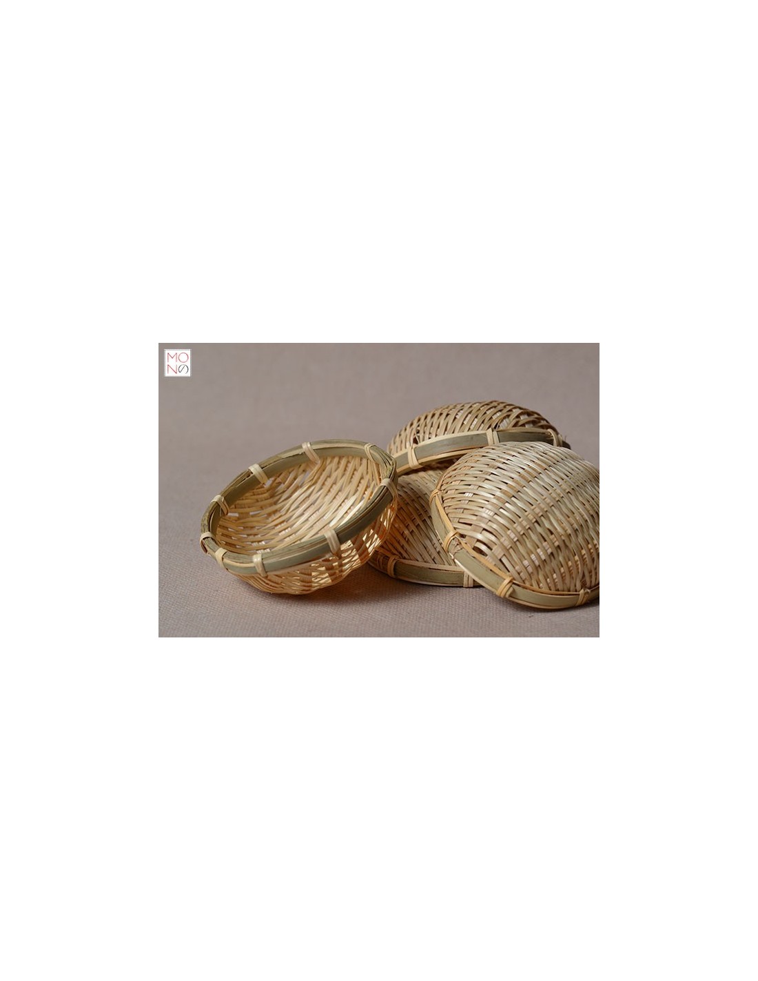 Cestino interamente in bambù intrecciato. Dimensioni: diametro 8cm x 3,5cm di altezza 1pz