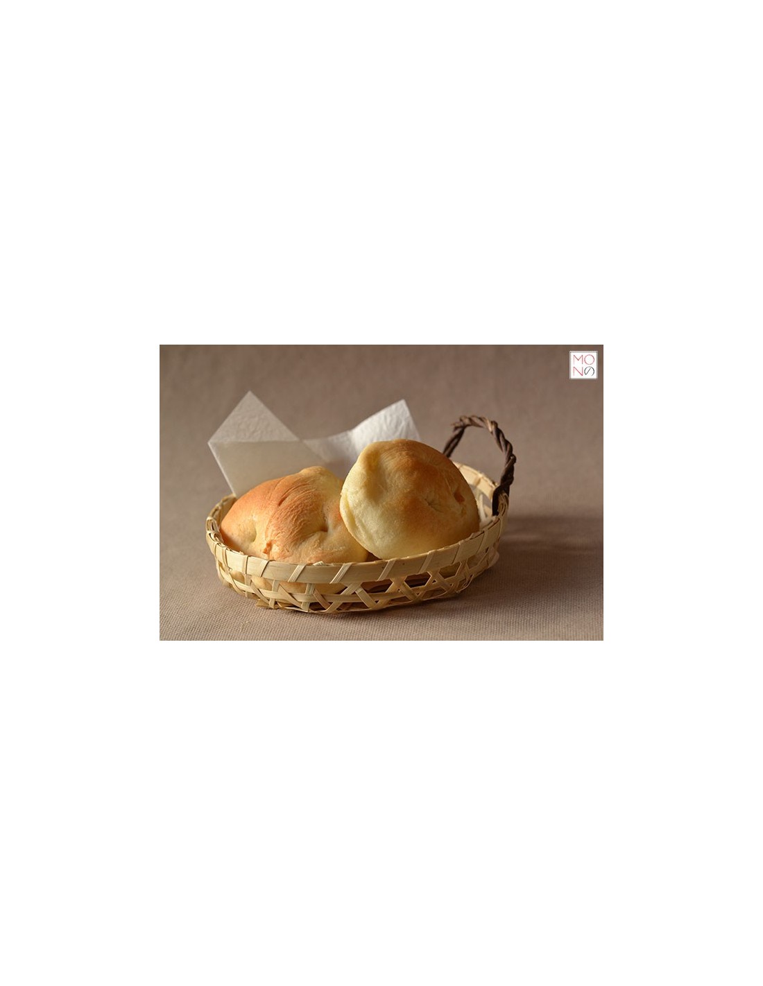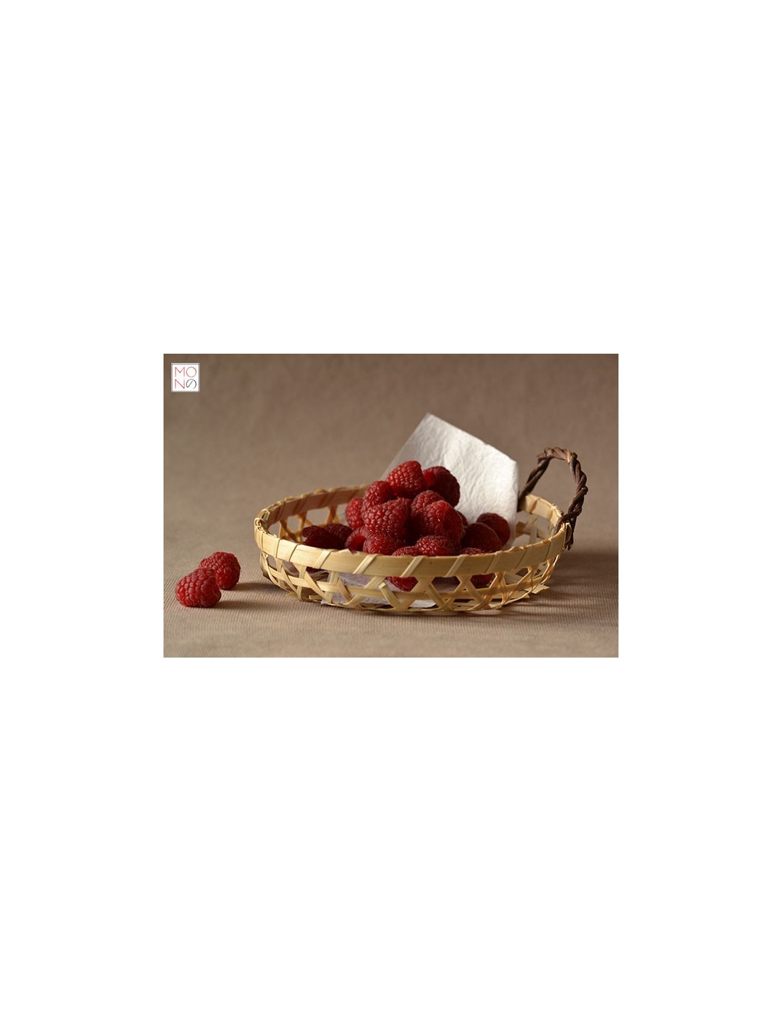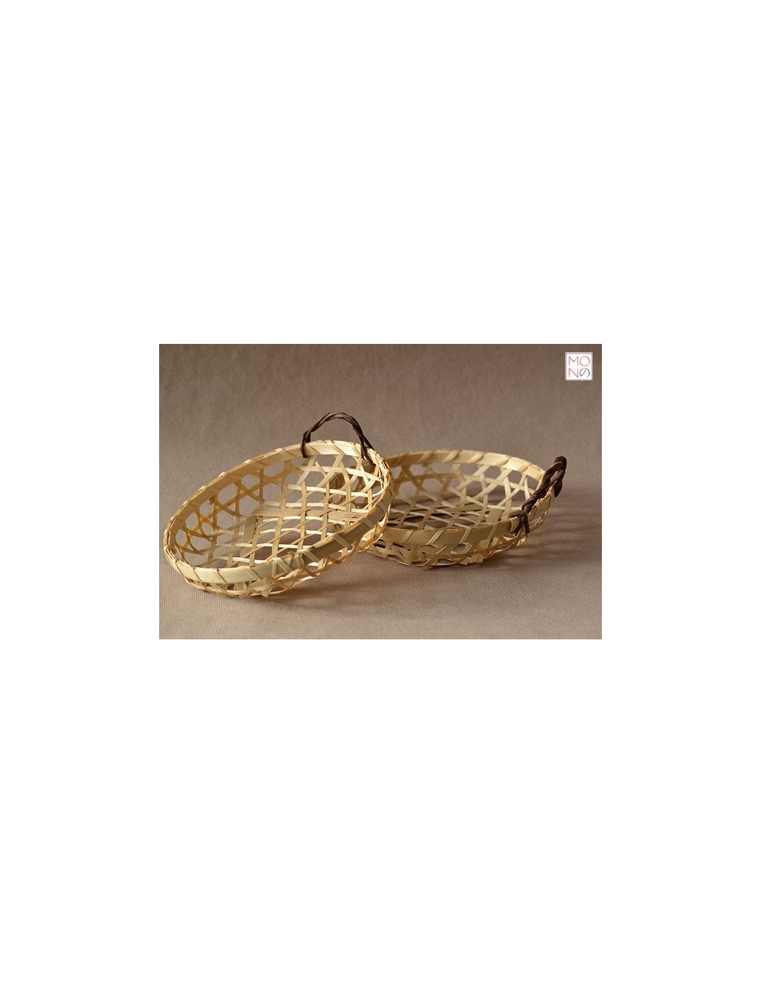 Cestino interamente in bambù intrecciato Dimensioni: 16cm di diametro, 3 cm di altezza, 6cm altezza manico. 1pz