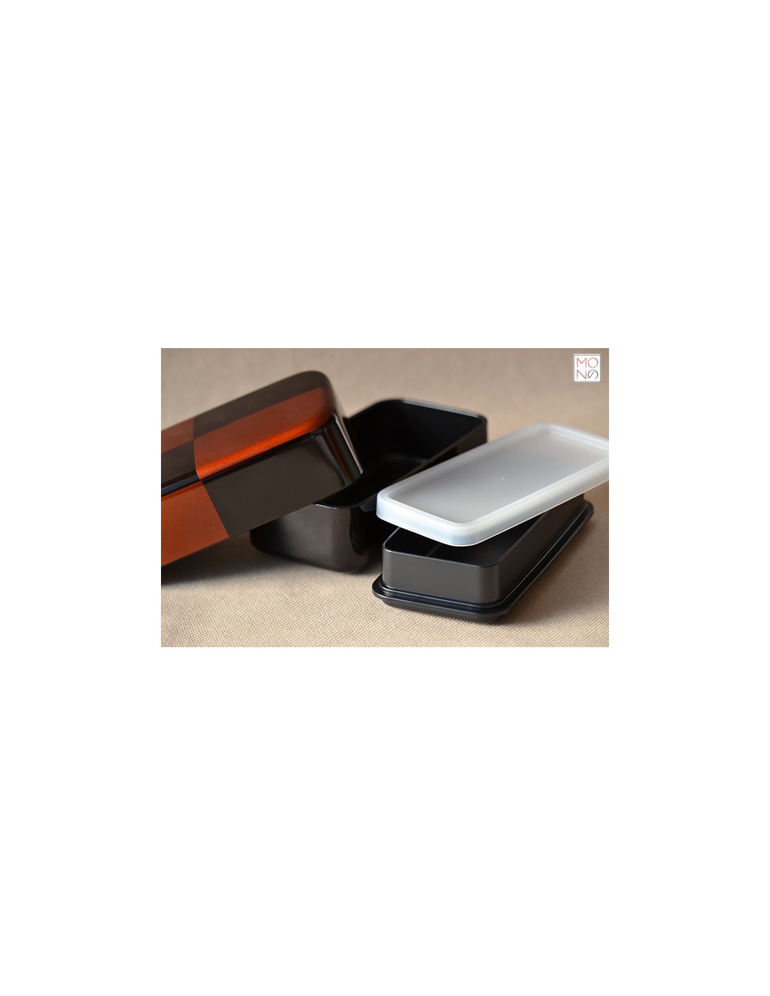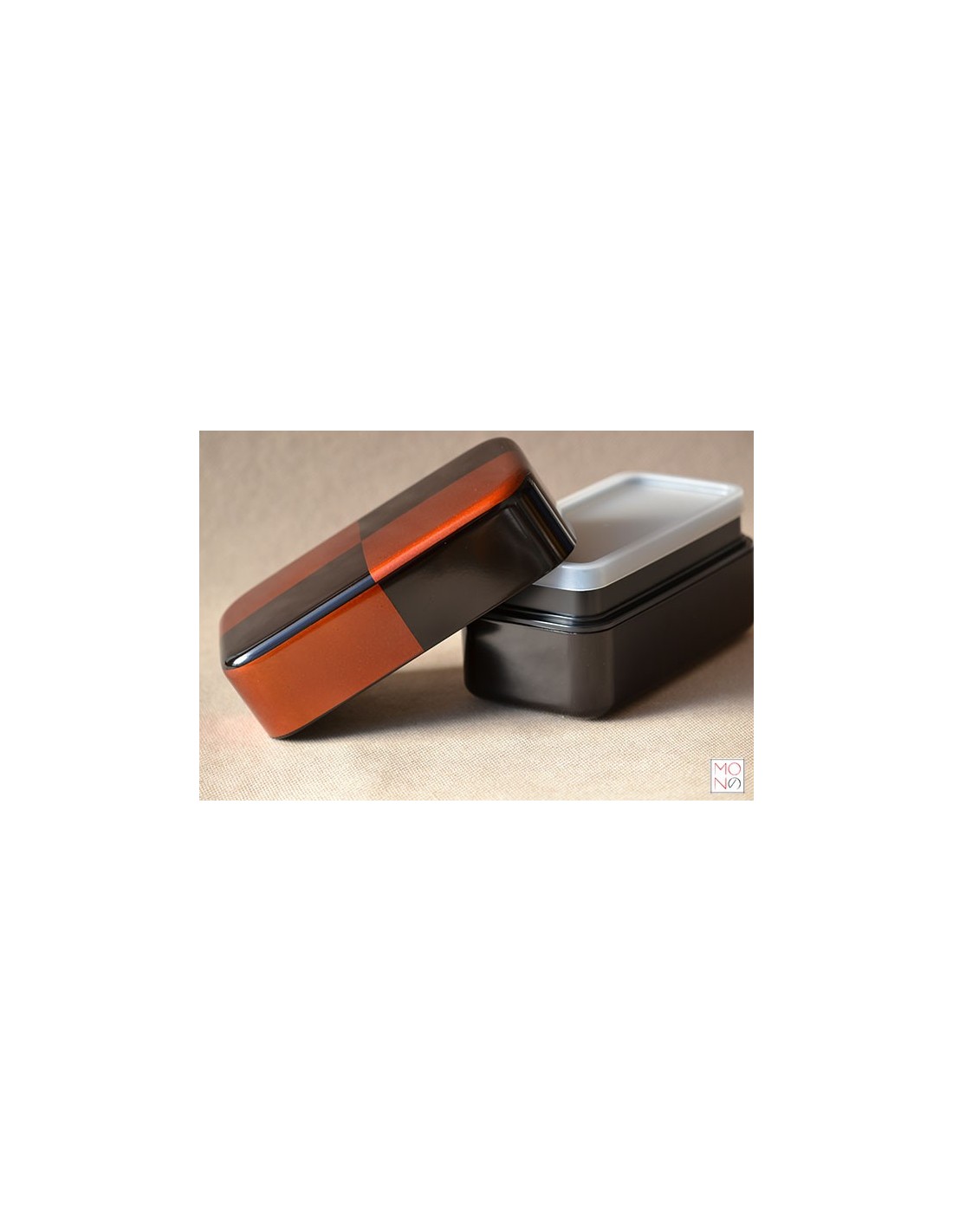Bento Box in lacca (coperchio) / in melanina (corpo) per il trasporto del pranzo (ufficio/scuola/picnic) con due scomparti, di cui uno a chiusura ermetica utilizzabile in microonde (consigliabile potenza 600watt per 3 minuti; oltre 600watt per 2 minuti) lavabile in lavastoviglie Dimensione: 15cm x 8cm x 7cm di altezza 1pz