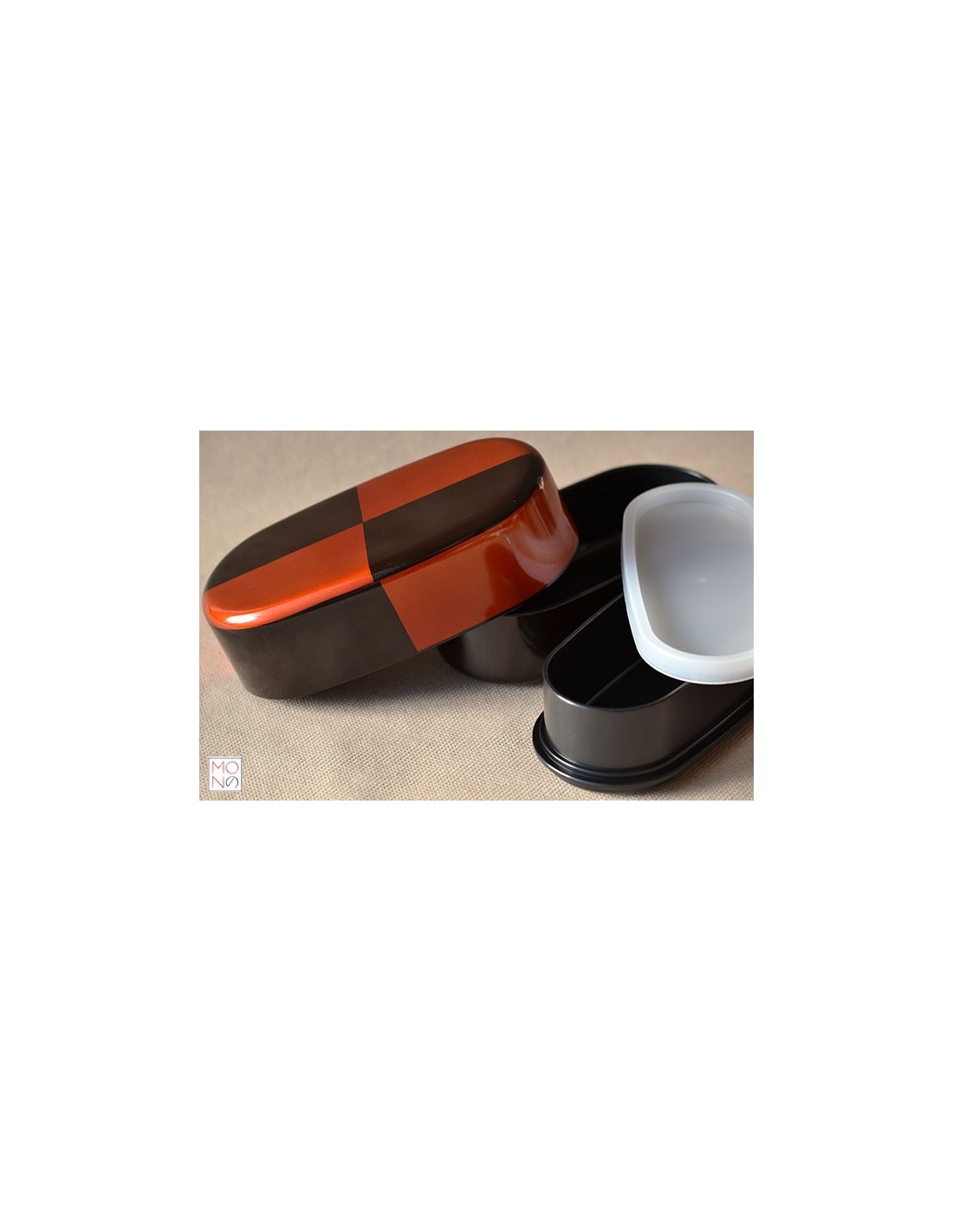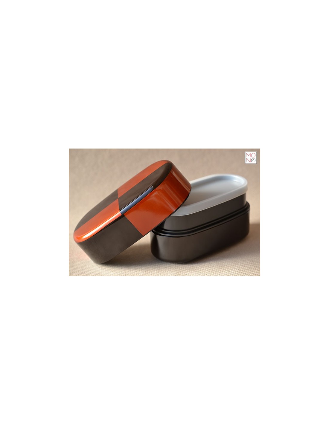 Bento Box in lacca (coperchio) / in melanina (corpo) per il trasporto del pranzo (ufficio/scuola/picnic) con due scomparti, di cui uno a chiusura ermetica utilizzabile in microonde (consigliabile potenza 600watt per 3 minuti; oltre 600watt per 2 minuti) lavabile in lavastoviglie Dimensione: 15cm x 8cm x 8cm di altezza 1pz