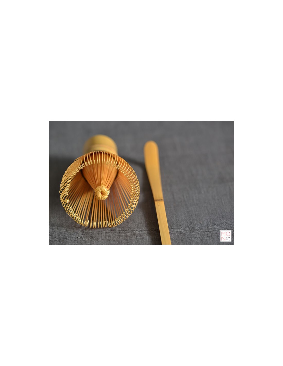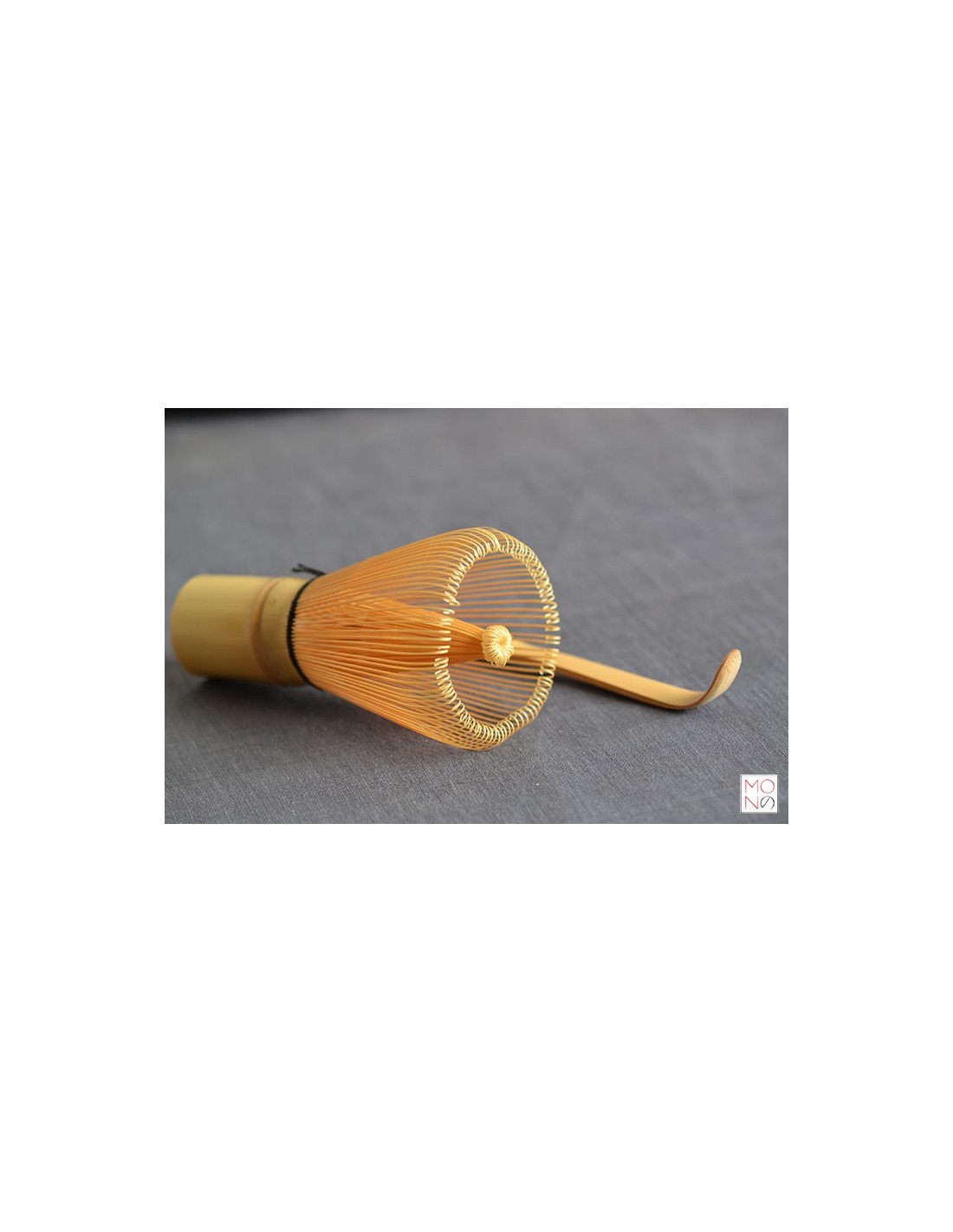 Frullino indispensabile per la preparazione del tè verde matcha, ricavato da un unico pezzo di bambù intagliato in 100 filamenti detti Hosaki. Realizzato a mano da abili artigiani.