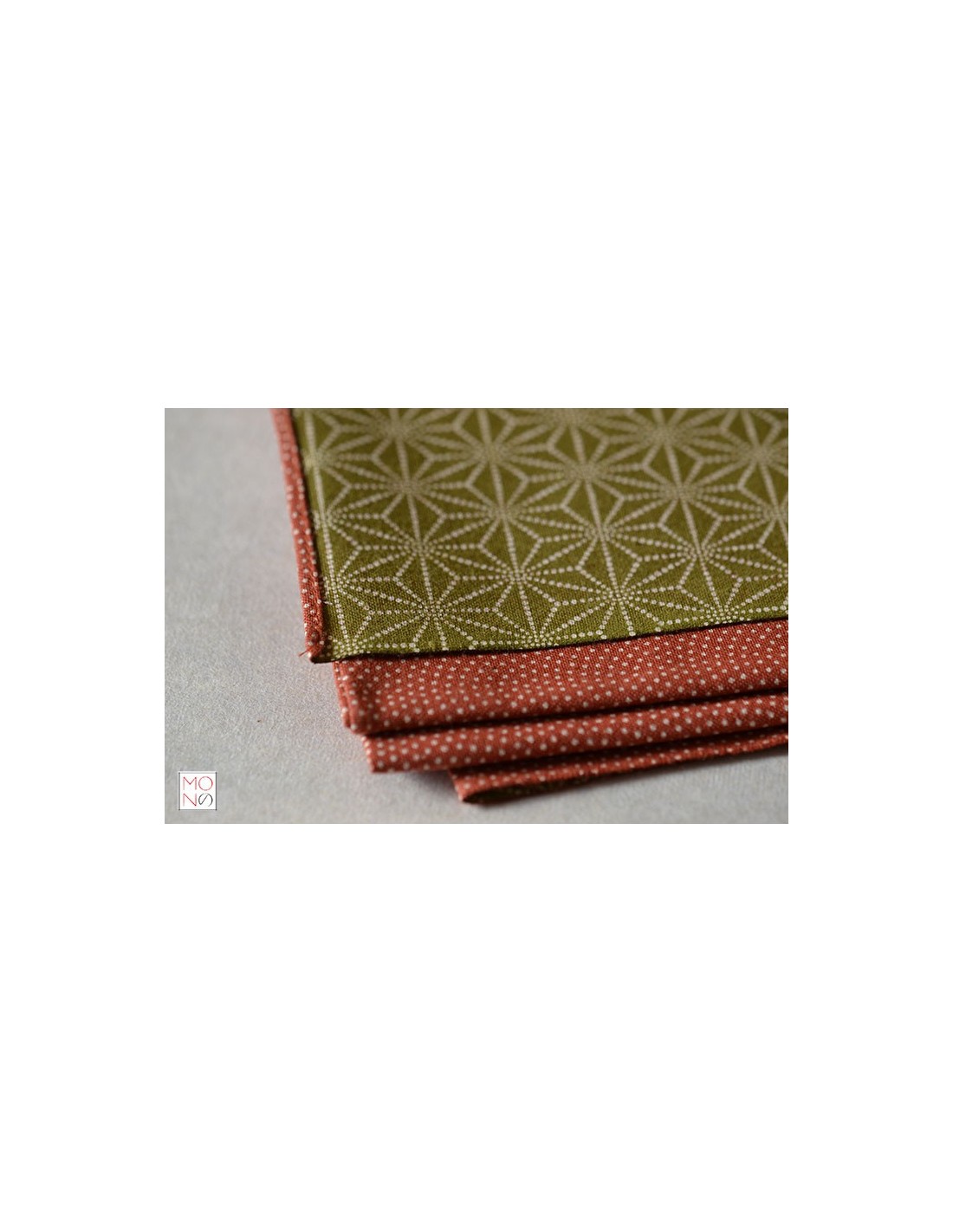 Furoshiki Tessuto stampato 100% cotone Sui due lati differenti pattern tradizionali giapponesi: asanoha/samekomon Dimensioni: 104x104cm